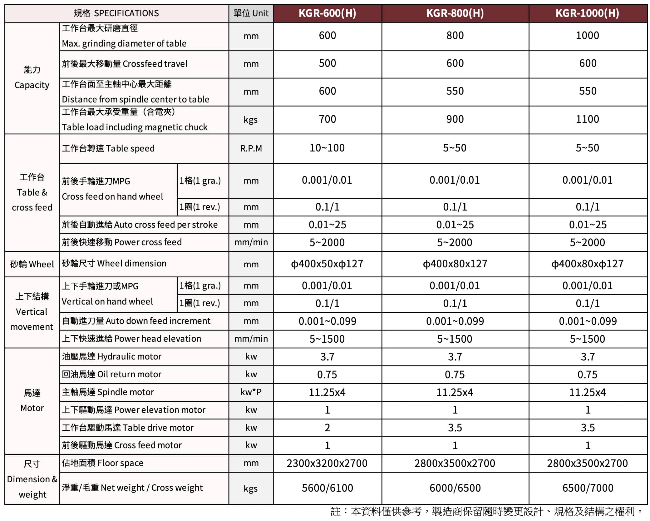 工作臺(tái)最大承受重量(含電夾) (mm) 700 900 1100